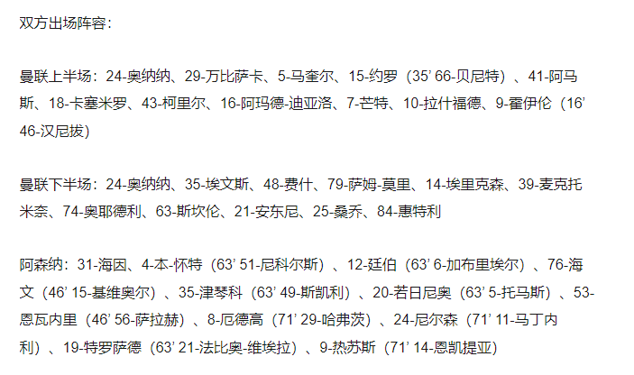 热身赛-阿森纳2-1逆转曼联 霍伊伦破门伤退约罗35分钟离场