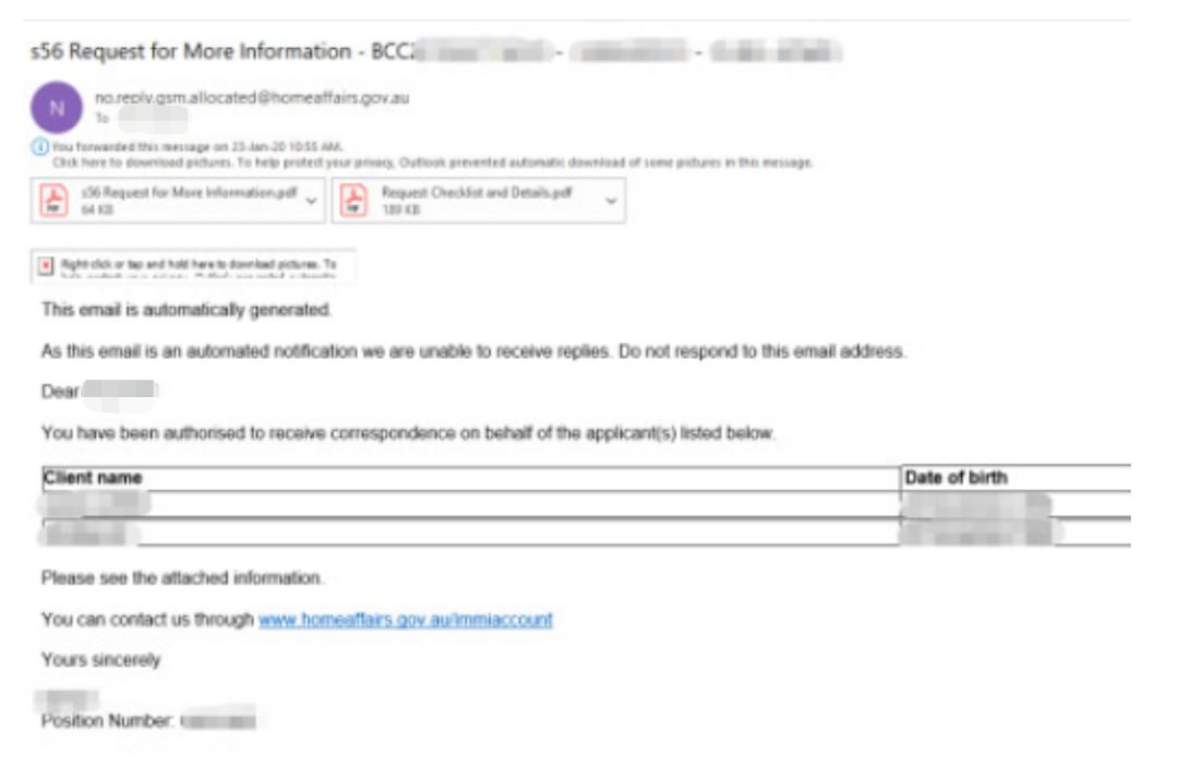 大多数情况下,补料要求是根据移民法案第56条做出的,所以当申请人收到补料通知时,会看到文件的标题是“s56 Request for More Information”。