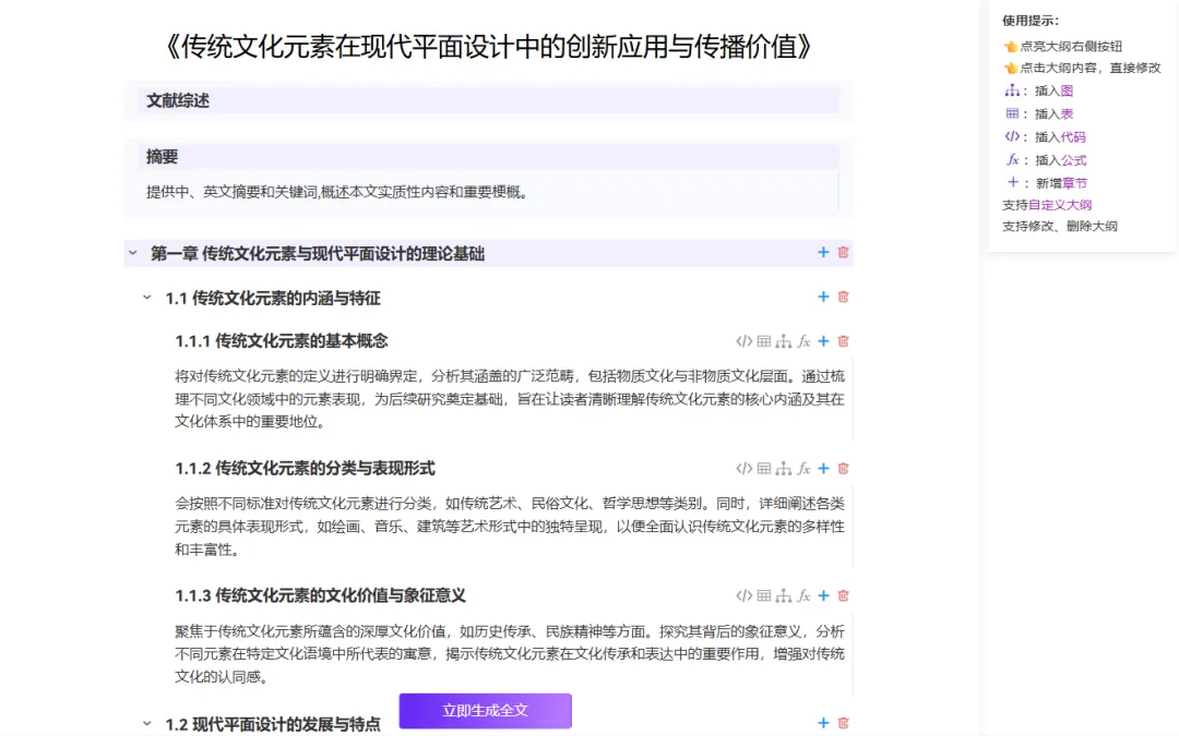 易笔AI提供免费的三级结构论文大纲生成服务,覆盖开题报告、文献综述、课题论文等论文场景。论文大纲可根据需求灵活调整,每级论文标题附带内容提示与论文写作建议,帮助搭建清晰的论文写作框架,让AI论文生成更有条理,发挥AI论文助手优势。