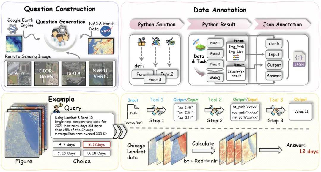 只能处理 RGB 图像,面对光谱数据束手无策。 只能做少量的图片,无法胜任大规模遥感数据语料分析。 只能做简单问答,缺乏处理复杂、多步骤科学问题的能力。 囿于模型预训练所得的静态知识,无法调用成熟的专业工具与科学模型体系。而今,这些 「致命伤」 终于迎来了它们的解药。想象一下,有一个能真正理解并执行复杂地球科学任务的 「AI 科学家」。它能够理解你的研究意图,像人类专家一样自主规划分析流程;可以处理原始光谱数据、遥感影像和地球产品,进行专业的指数计算和参数反演;能在多步骤推理中调用最合适的工具,完成从数据预处理到时空分析的全流程工作。