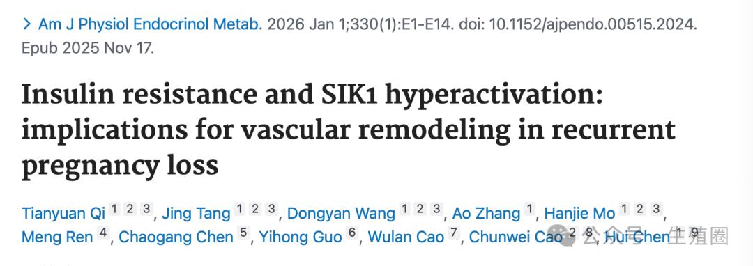 Insulin resistance and SIK1 hyperactivation: implications for vascular remodeling in recurrent pregnancy loss. Am J Physiol Endocrinol Metab. 2026 Jan 1;330(1):E1-E14. doi: 10.1152/ajpendo.00515.2024. Epub 2025 Nov 17.