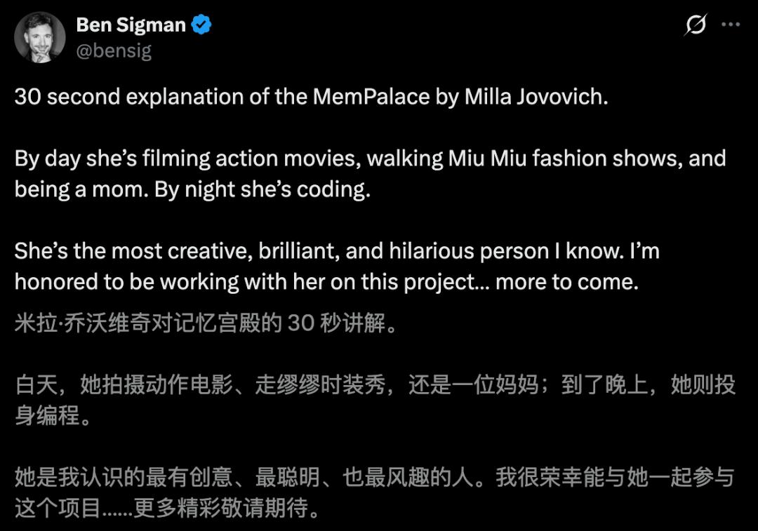 Ben最新一条帖子中,还做了一个双关:Mempalace -> Multipass。