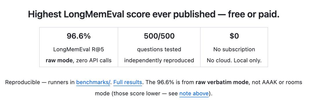 开源社区的反应也很有意思。骂完之后,反而有更多人开始认真审视这个项目——96.6%的raw模式成绩是实打实的,本地免费也是实打实的。