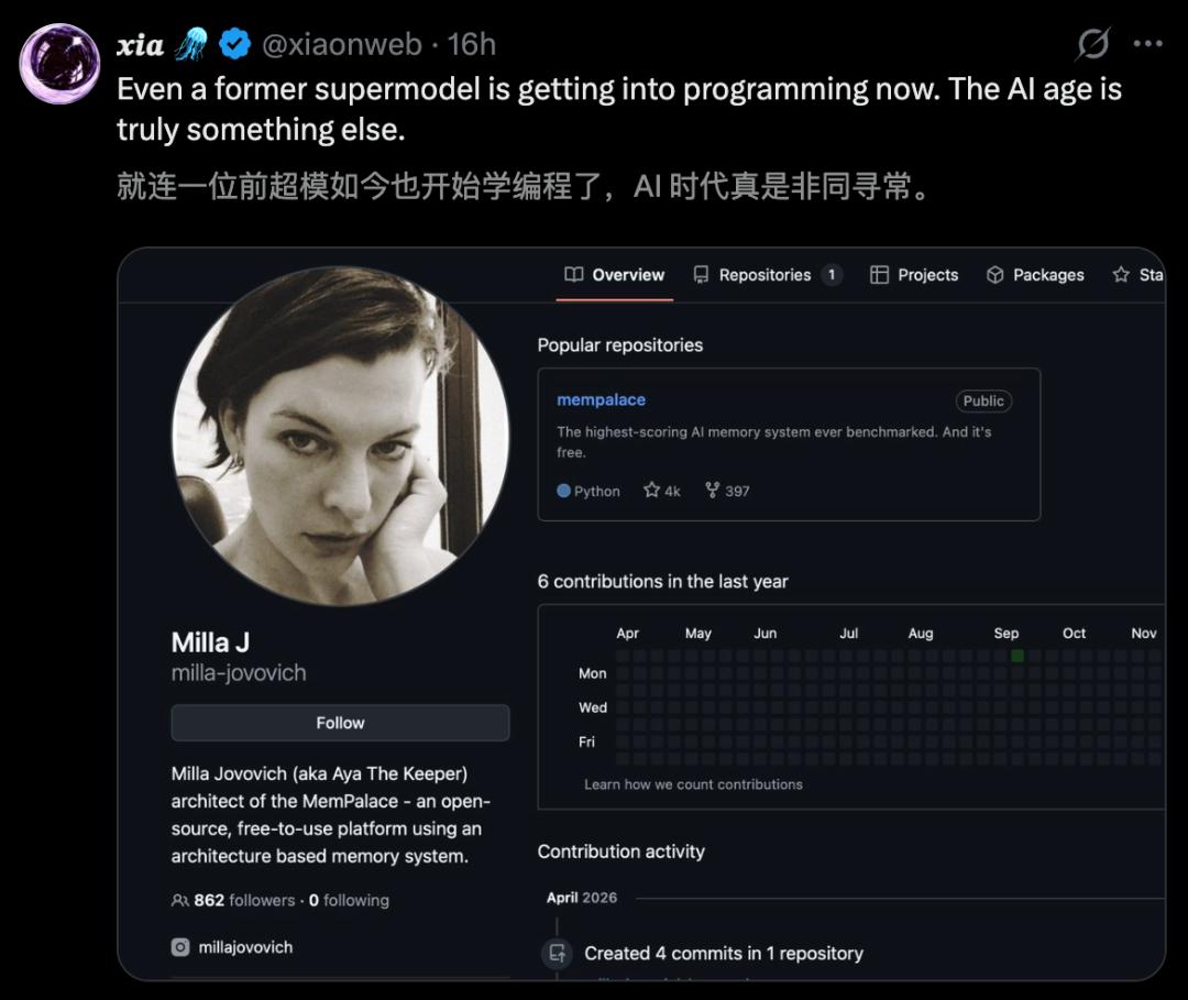 GitHub地址:https://github.com/milla-jovovich/mempalace