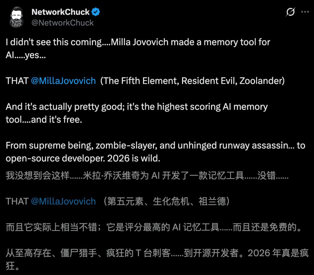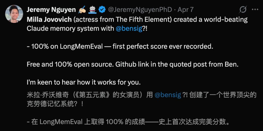 【新智元导读】全网震撼!《生化危机》女主跨界撸码,用Claude造出地表最强AI记忆系统,斩获全球首个满分。一年仅0.7美元,就能让大模型拥有永久记忆。