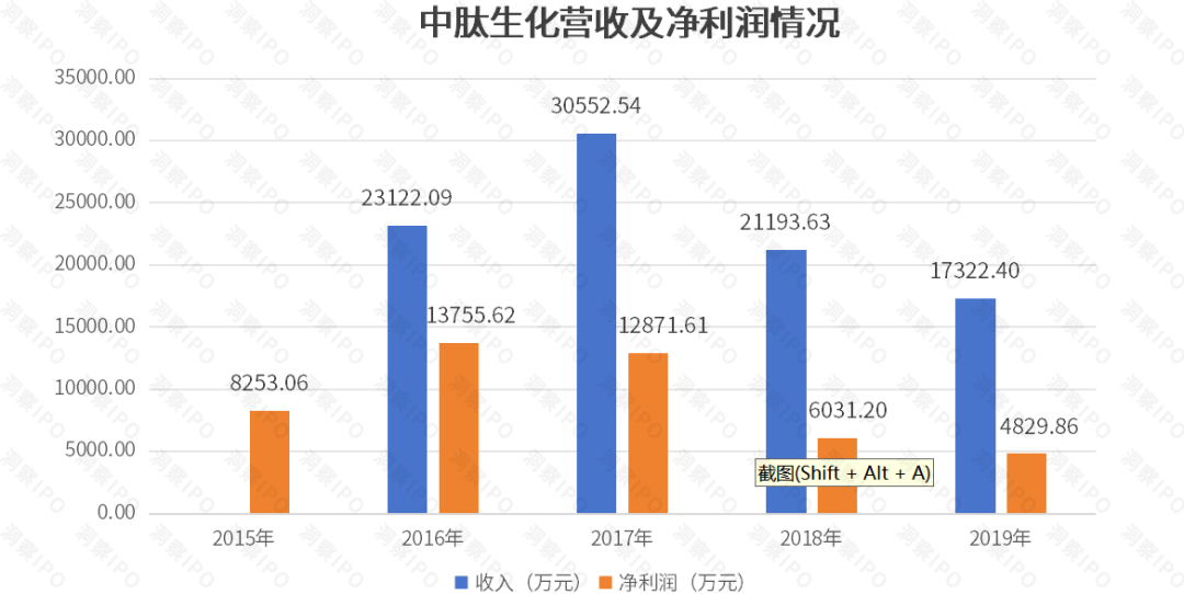 2016年、2017年,中肽生化的营业收入分别为2.31亿元、3.06亿元(2015年营收未披露),2015年-2017年净利润分别为8253.06万元、1.38亿元、1.29亿元。