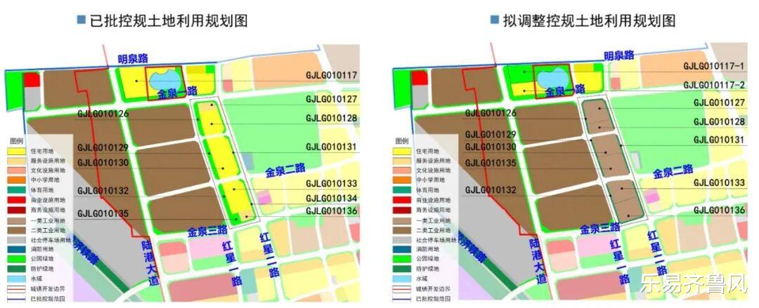 1.将住宅用地(GJLG010128、GJLG010130、GJLG010133地块)、服务设施用地(GJLG010127、GJLG010136地块)、公园绿地(GJLG010135地块)调整为一类工业用地,调整后1.5≤容积率≤2.0,建筑密度≥35%,绿地率≤15%,建筑高度≤24米。