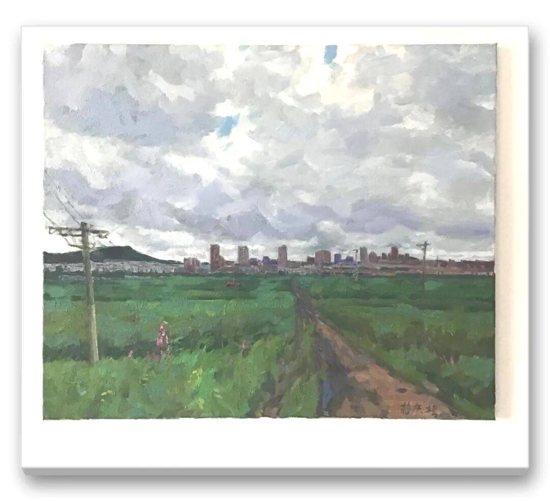 雪山的冷白裹着淡蓝,与桃枝的粉紫撞出春的清冽。蜿蜒的土路从绿草地里伸出去,像给雪山递了一封花信。这里的烟火气,却有天地初醒的轻盈 ,油彩的薄涂让桃花笼着雾,雪山的厚堆又显出肌理的硬朗,刚柔之间,是林芝春天独有的 “寒暖共生”。画家没把这里画成滤镜里的网红打卡点,而是让风的痕迹、花的颤动都留在笔刷里,像站在桃树下抬头时,恰好接住一片落瓣的心动。当泥泞土路撞进视线,仿佛同时握住了生活的两种肌理 , 一种是烟火里的褶皱,一种是天地间的舒展。以画笔为锚,一头扎进市井的呼吸,一头轻触自然的脉搏,让 “写生” 跳出技法的框架,成了与世界对话的温柔方式。泥泞的道路泛着雨后的幽紫,路边矮房的蓝铁皮顶、斑驳的红墙,混着疯长的绿藤,像被时光揉皱的旧信笺。画家没有刻意美化城中村的杂乱,反而用厚重的油彩肌理,把土路的坑洼、树叶的绒毛都钉在了画布上, 那不是 “风景”,是某个午后的风裹着尘土掠过巷口的真实,让这片被城市遗忘的角落,在颜料里有了姓名。它的动人,恰是因为不完美:那些歪斜的房屋、潦草的植被,都是普通人生活的注脚,在画笔里成了不褪色的烟火。