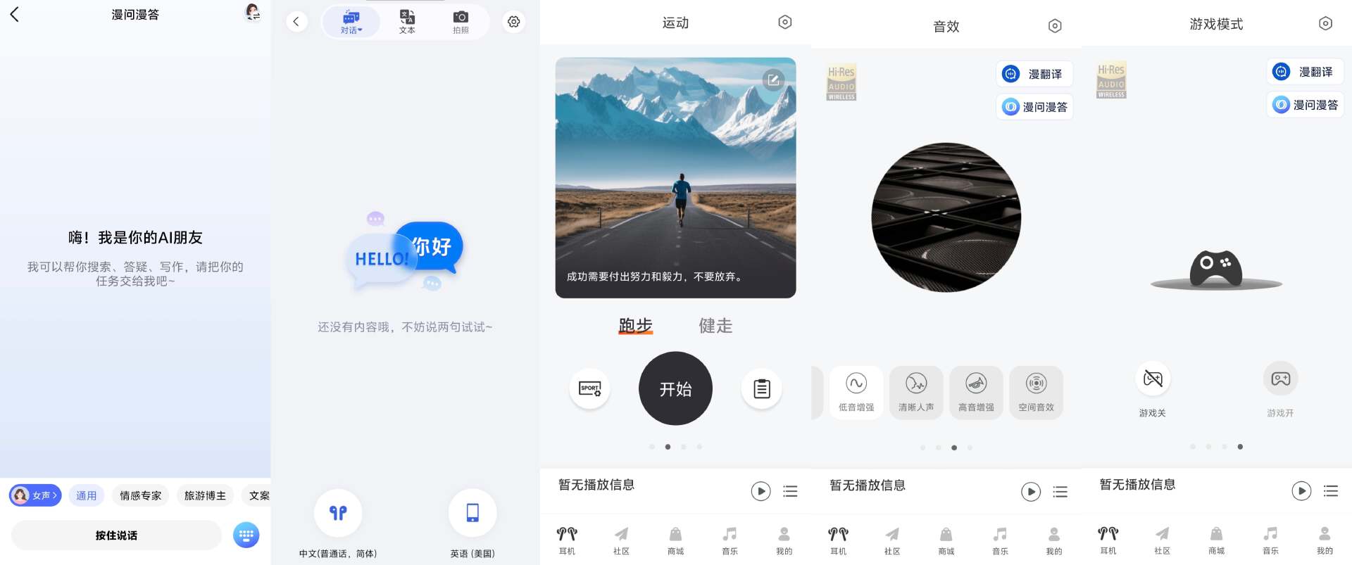 紧接着,“EDIFIER Connect”APP这一次也是得到了进化,与漫步者FitClip Ultra耳夹式耳机的配合下,带来了AI智慧助手,同时接入了豆包、DeepSeek Al两大模型,有啥不懂的可“漫问漫答”,并且支持一键开启翻译功能,支持21种语言实时翻译,这下碰上国际友人的时候也不用担心沟通问题了。甚至还可以进行EQ音效设置,轻松切换不同的音乐风格,而在运动的时候,还有专属的运动界面,运动时长/里程/路线/配速/卡路里一目了然,这下子运动起来就更有劲了。此外,若喜欢玩游戏的话,也可开启游戏模式,在游戏模式下,在低延迟的同时做到了声画同步。
