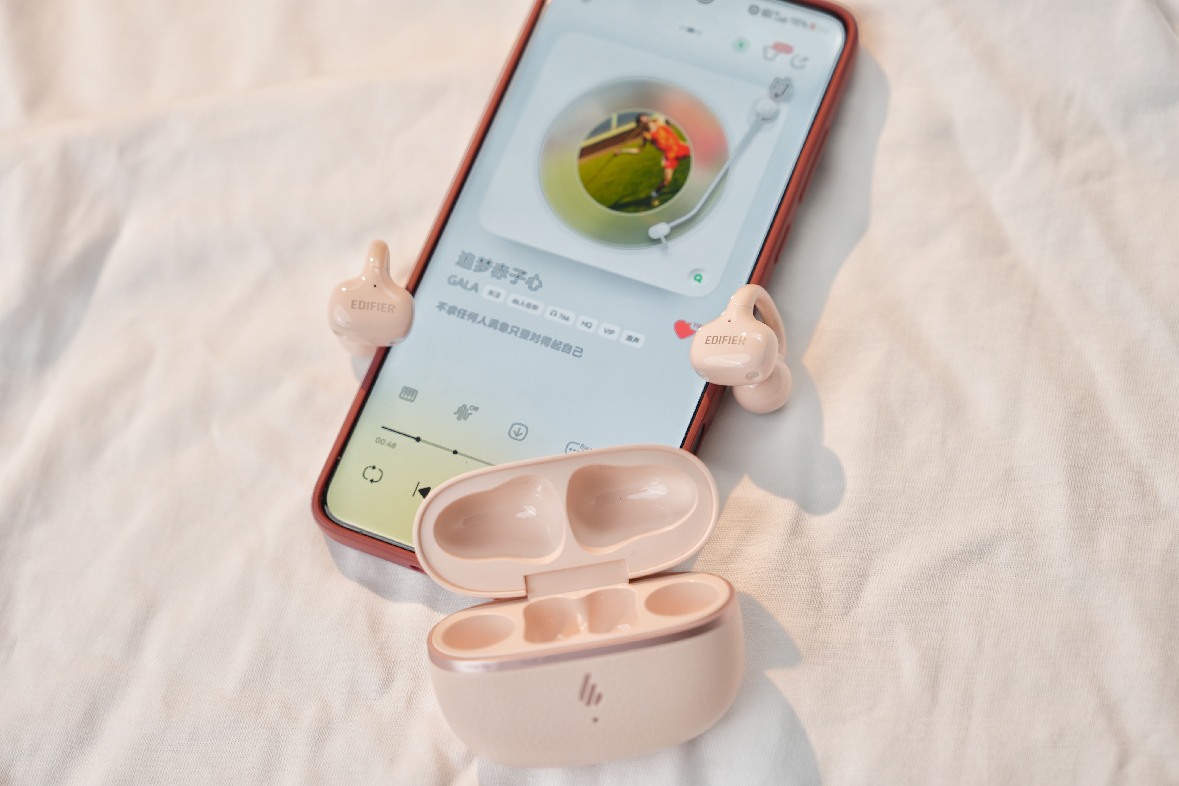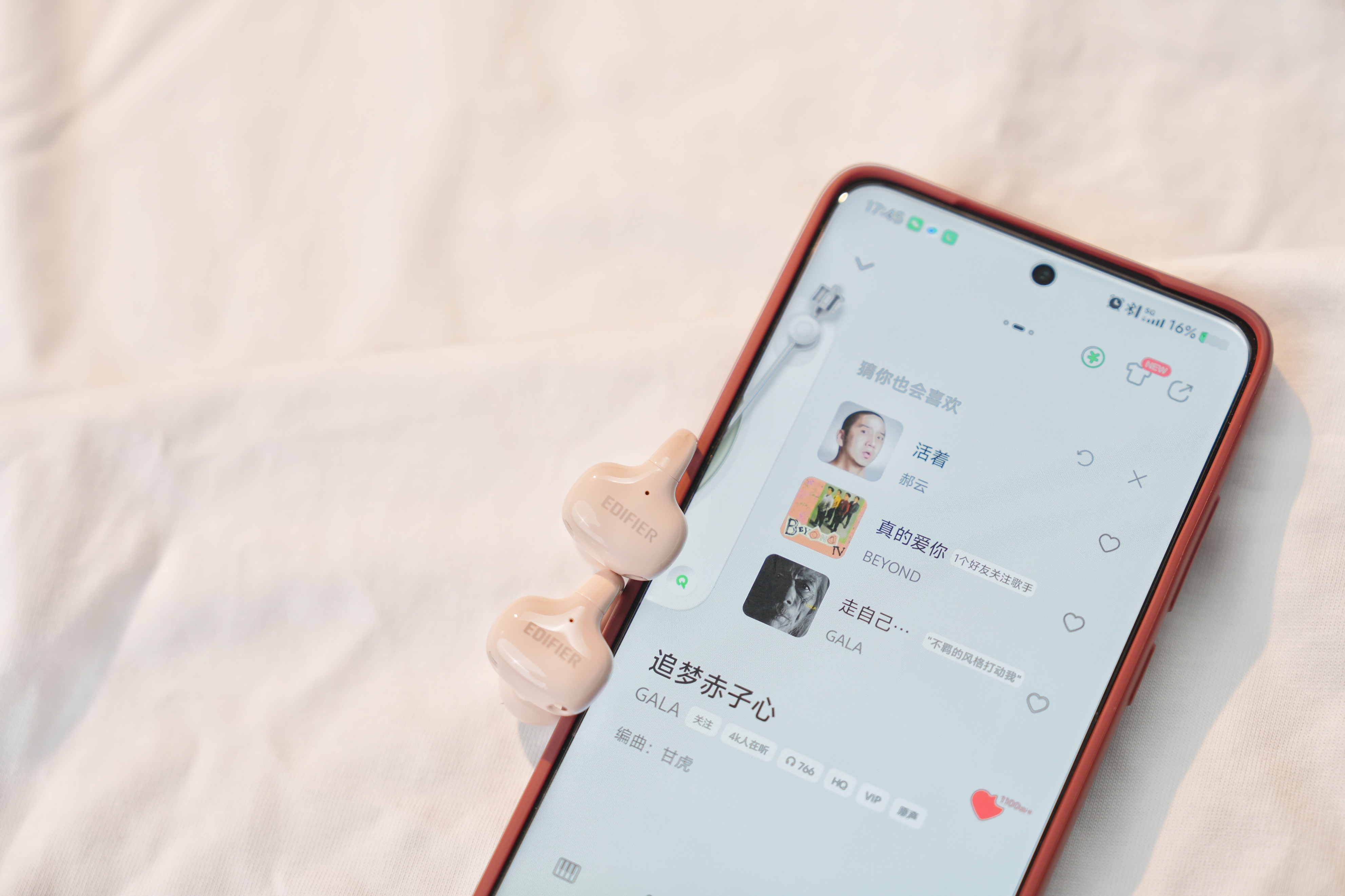 再来,音质上的话,得益于搭载了新一代蓝牙V6.1,实现了连接更稳定,在我连接的过程中全程稳定的很,且首次连接妙连迅速。加之,采用12mmPU+纸复合振膜,带来了高频通透低失真,低频强劲有张力的声音表现,并且经由LDAC音频编解码+Hi-Res Wireless金标认证,让音质更进一步地得到了提升。同时,搭载了漫步者全新空间音效。因此,无论是日常听歌、追剧或是游戏,都能让你360°沉浸其中。
