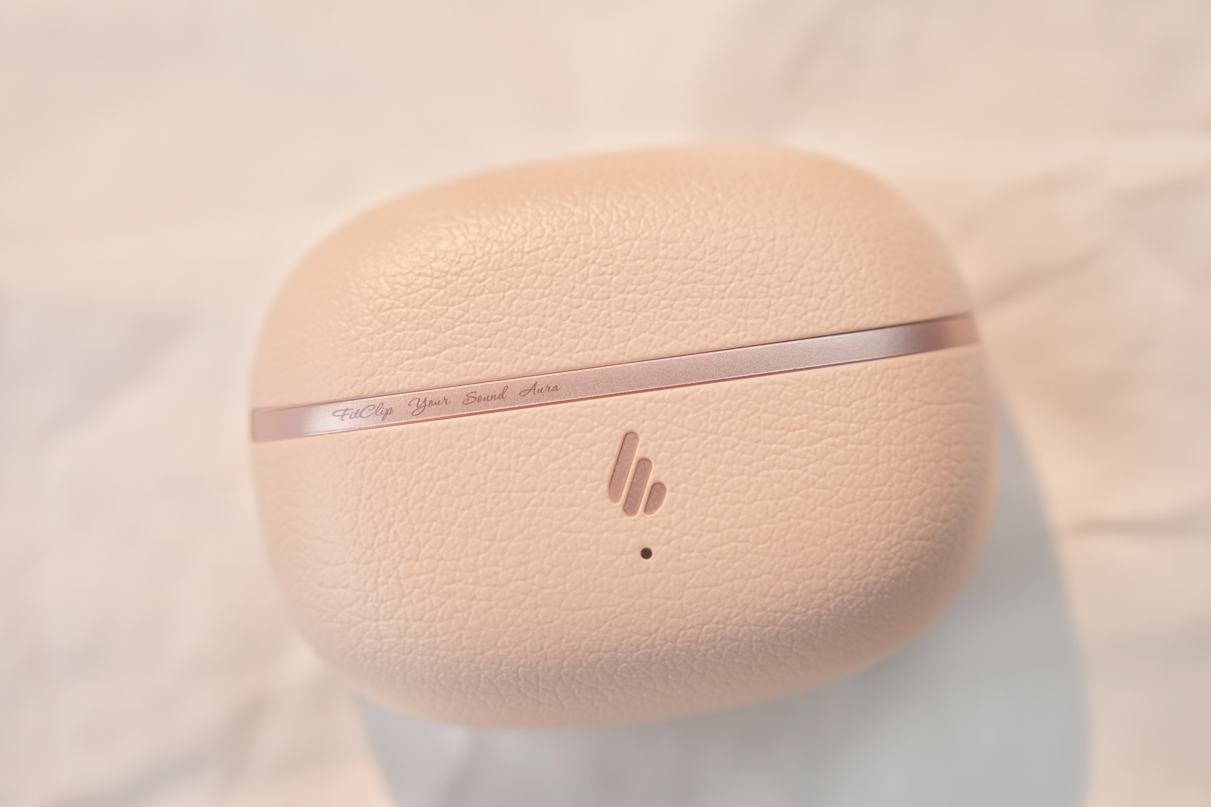 如同所见,我的这款漫步者FitClip Ultra耳夹式耳机在配色上为玫瑰粉,平时的我也很少用粉色,而突然发现这款的粉色倒也蛮好看的。当然了,还有“贝母白”和“流光黑”双色可选。同时该耳机的充电仓采用质感皮纹设计,且在开盖的区域使用了精致腰带设计,上面还有“FitClip”等英文进行点缀。此外,在其背后则是Type-C接口,故整款耳机看着相当的潮范。