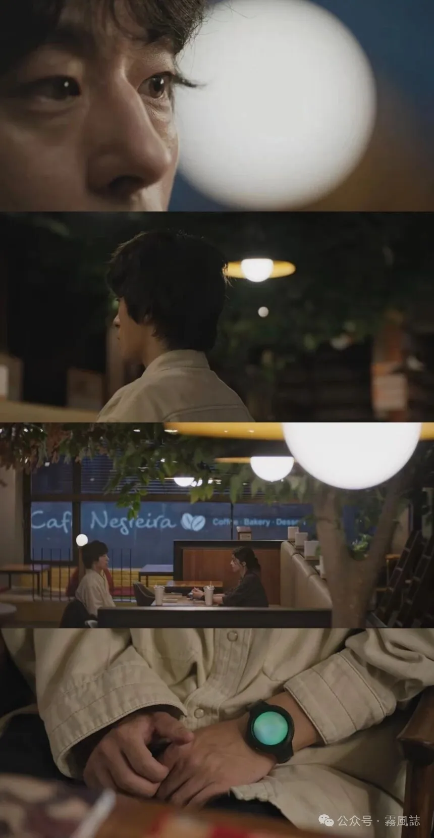 久违地有人说了肯定他价值的话,情绪手表马上诚实地做出反应。这里都是依靠外部变化(灯光、手表)来表达人物内心情绪。