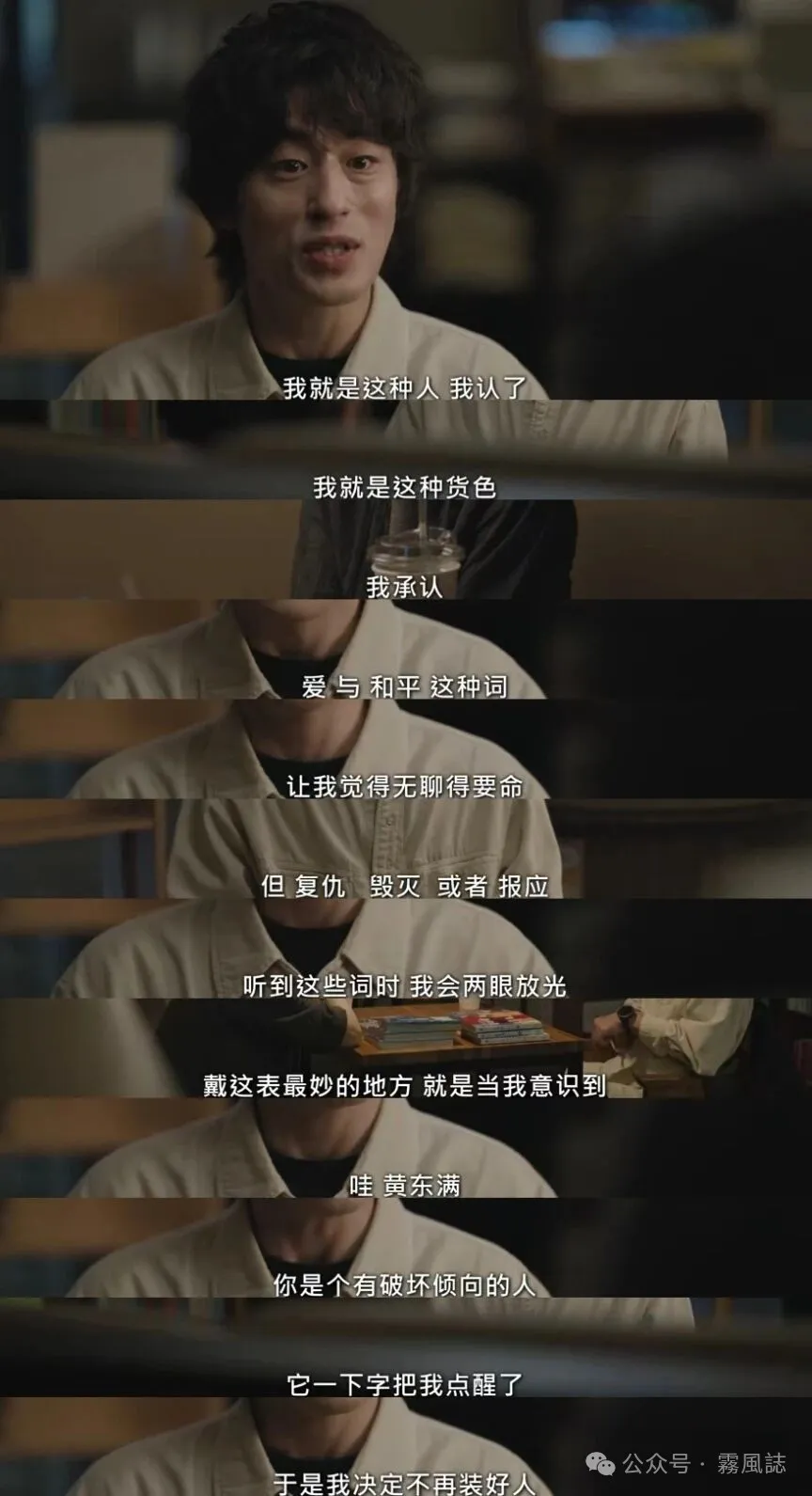看客的心理特征有三种典型心理特征,分别是邪恶快感、社会恐惧、道德恐慌。黄东满的例子接近“邪恶快感”。现实中,看热闹不嫌事大,或幸灾乐祸的人类也不在少数,会被复仇、毁灭、报应吸引又算什么?但是人们大概会碍于体面隐藏、至少不会昭之于众?可是黄东满什么都说,也许就是这样,恩雅才会说他是千扇门全敞开的人吧~