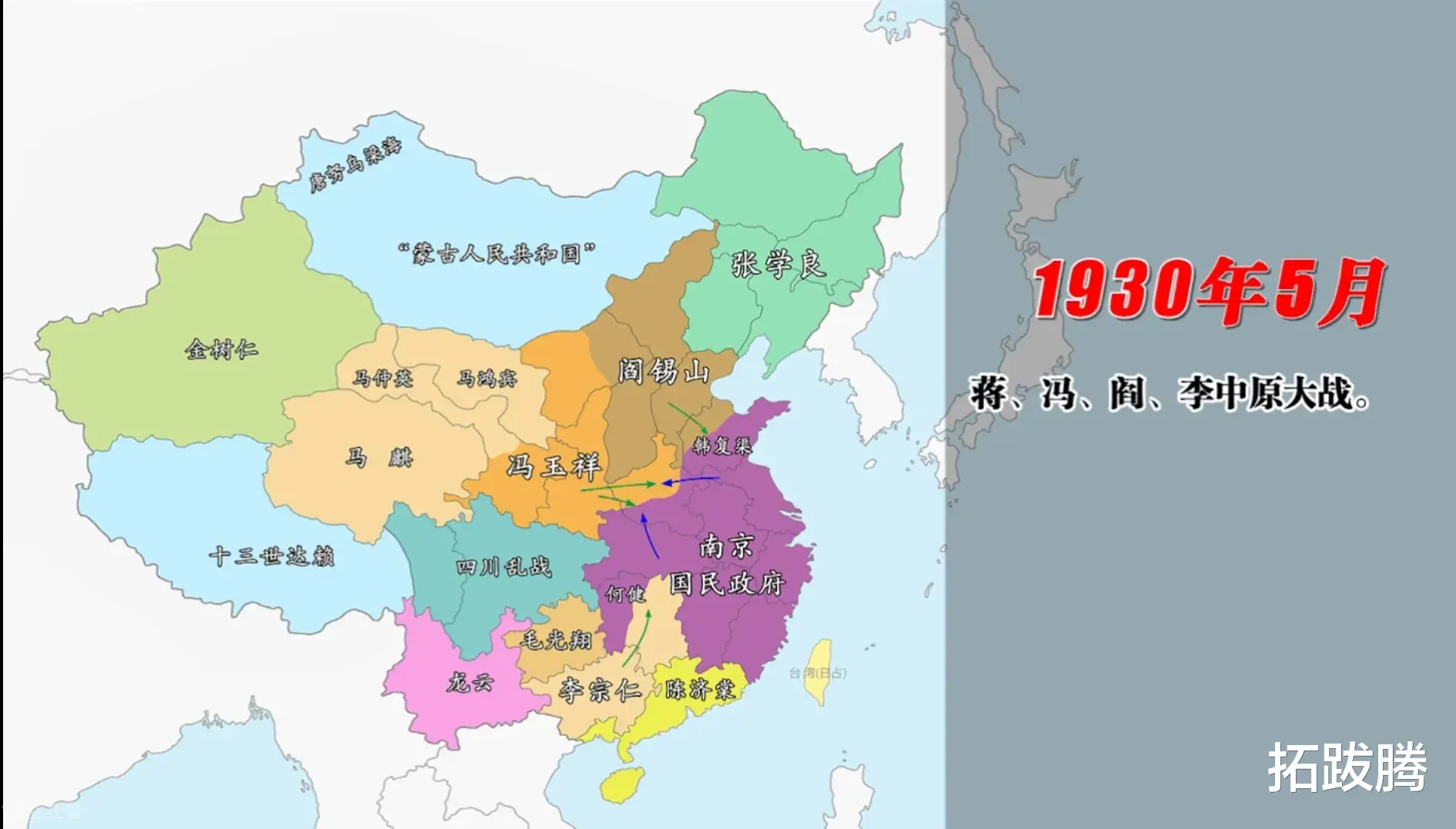 虽然1928年,张学良东北易帜,蒋介石完成形式统一。但表面的统一掩盖不了实质的分裂