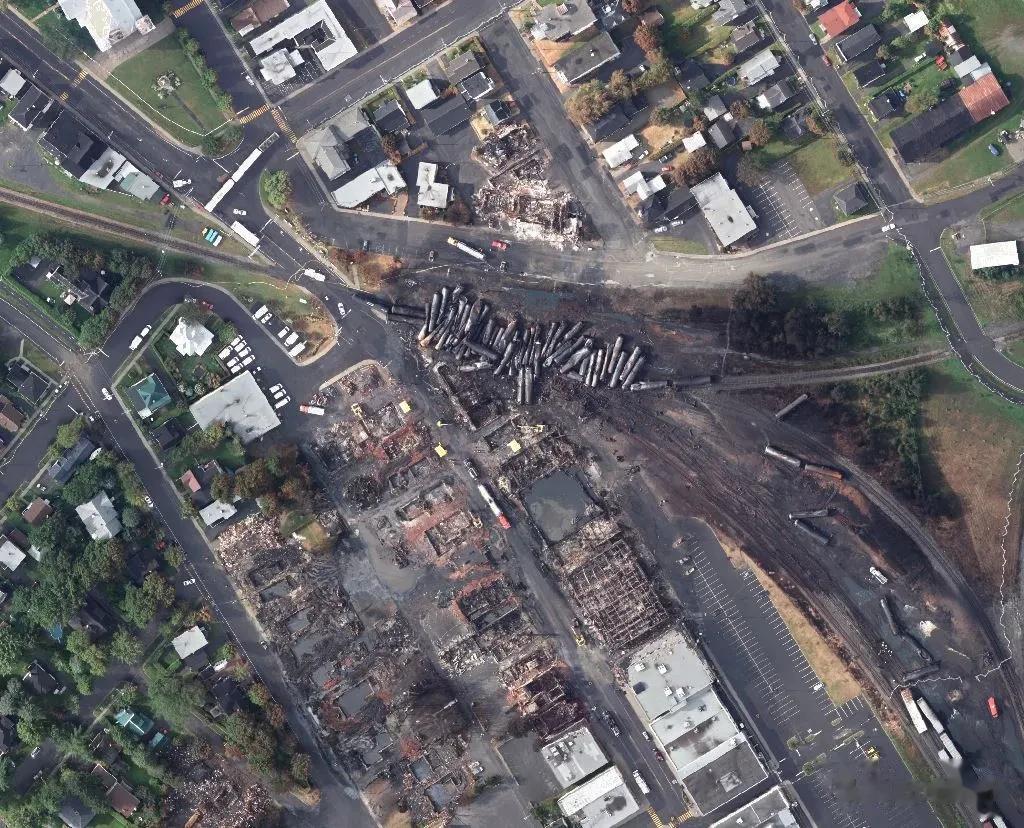 失事列车由美国的铁路公司运营,装有1万吨的高压油罐原油,72接原油车厢与车头脱钩,随后出轨并引发大火,10万升原油泄露,小镇随后废弃。