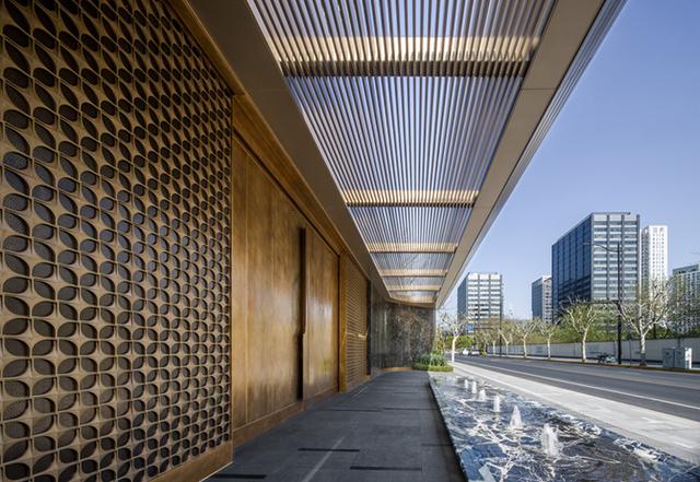 与室内设计相得益彰的景观设计,同样采用了精工奢华的石材,包括运用于门头巨幕的40米长的巴西进口铂金钻和宝格丽黑等珍贵材质,以期达到内外和谐统一之美。