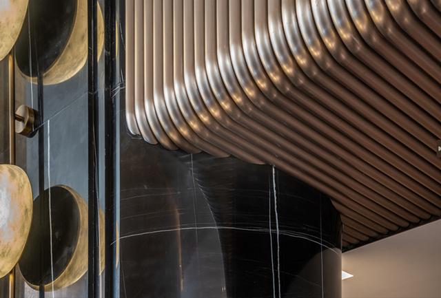 嘉佰道项目公共区域由梁志天团队操刀,该设计集合了酒店级的设计元素,为社区大堂、豪华的入户大厅以及精美装饰的地库提供了高定方案。此过程中,优雅与精致并重,体现在每一处精雕细琢的石材装饰上,这些精湛的工艺展示了极高的审美标准。