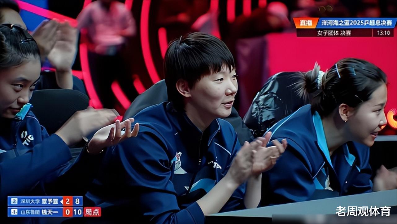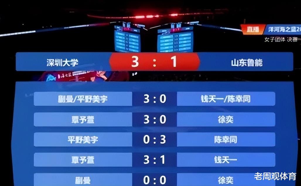 缺少核心支柱的决赛,成为了两队梯队厚度与临场应变的较量。首盘女双对决,深圳大学的蒯曼与平野美宇配合默契,以11-6、11-7、11-6直落三局拿下开门红;次盘单打,19岁小将覃予萱顶住压力,以13-11、11-8、11-8击败徐奕,将比分扩大为2-0。绝境之下,陈幸同扛起鲁能大旗,在第三盘以11-9、11-5、11-6零封平野美宇,为球队扳回一分。但关键第四盘,覃予萱再度发力,以12-10、11-2、9-11、11-5击败钱天一,帮助深圳大学锁定胜局。这场没有顶尖对决的决赛,依旧充满战术博弈与拼搏张力,年轻选手的成长与老将的坚守,同样赢得了全场观众的敬意。