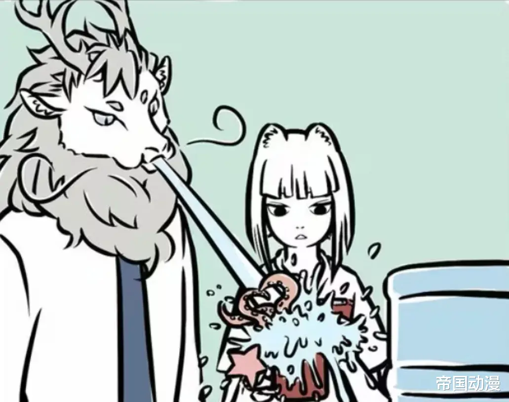 某天九月发现水都喝完了,准备打电话联系送水师傅,敖烈刚好路过,他热心的给九月的杯子里加水,他朝九月的杯子里喷出水和一些海洋生物(八爪鱼和海洋星),起初每周君以为八爪鱼一直杯子里,反复看了几次才确认八爪鱼是敖烈喷出来的,九月感觉有些恶心,将杯子扣在敖烈的脸上。两人的梁子就此结下。