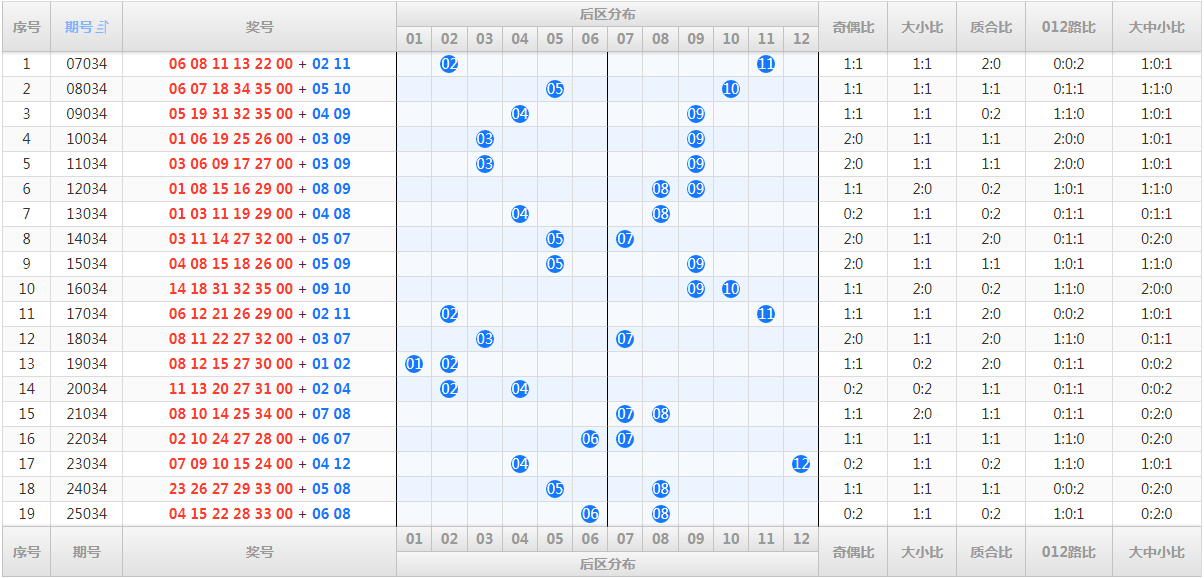 第034期后区胆尾(新数据):123尾,345尾,开?;