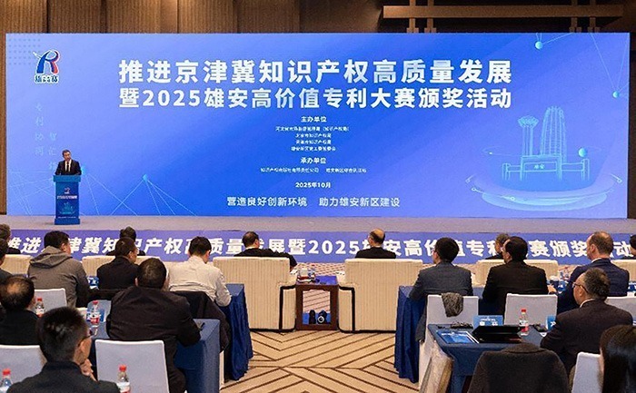 10月22日,由河北省市场监督管理局(知识产权局)、北京市知识产权局、天津市知识产权局、雄安新区党工委管委会共同主办的“推进京津冀知识产权高质量发展暨2025·雄安高价值专利大赛颁奖活动”在雄安会展中心举办。本次活动以“加快专利转化运用 助力京津冀协同发展”为主题,汇聚了来自国家知识产权局、京津冀三地的政府领导、行业专家、获奖企业及机构代表约150人,共绘知识产权赋能区域高质量发展新蓝图。