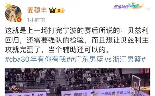 广东在主场87-102输给浙江,并且是对方吴前与巴斯两大主力缺阵的情况下输球,比赛的转折点就是对攻时段宏远哑火,千呼万唤找回的贝兹利再一次证明,自己根本打不了硬仗,赛后广东媒体人都忍不住发声:让贝兹利主攻就完蛋了,当个辅助还可以。