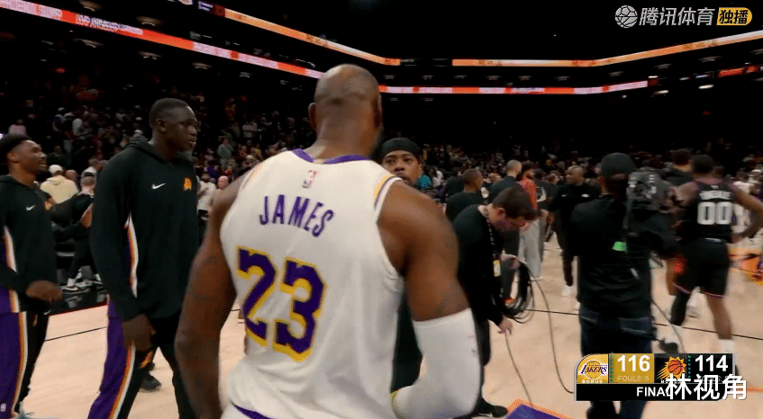 比赛结束,老詹显得非常开心,和太阳球员逐一拥抱,就连新秀马卢阿奇,走入场内的时候,也被老詹一把抱住,给了一个大大的拥抱,想来马卢阿奇也是心情激动啊,这就是偶像!