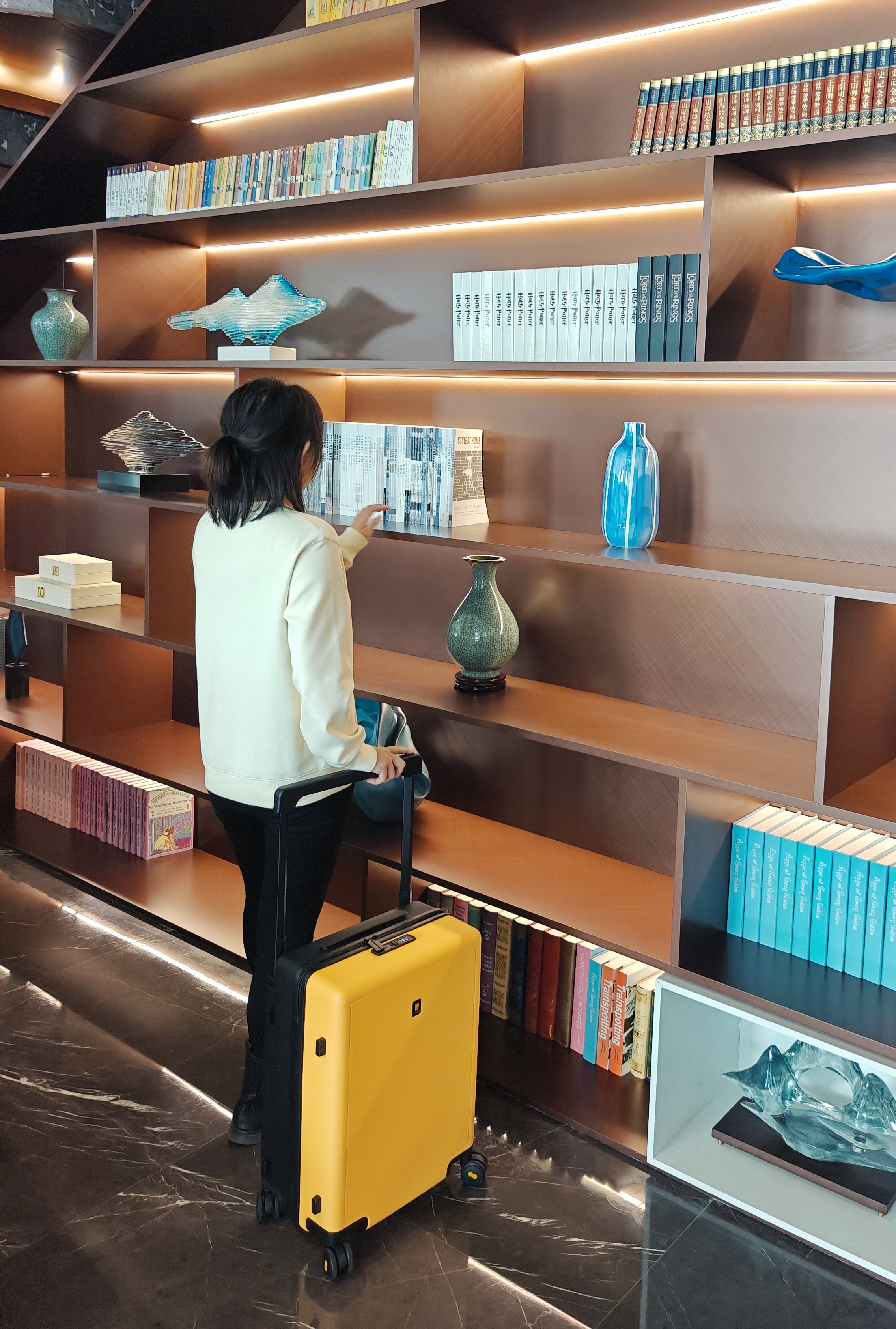 ● 丝滑移动:360°万向轮在酒店瓷砖、户外石板路等场景下转向灵活,几乎无噪音,推拉过程如行云流水。