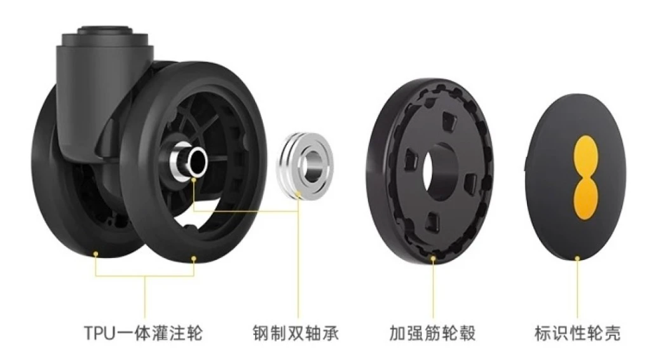 小黄轮的外观颜值也很高,每款箱子的轮子都带有品牌logo 8,识别度极高!