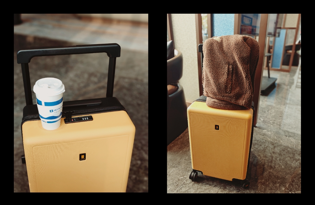 此外,地平线8号还有很多隐藏属性,比如可以在酒店将行李箱横放在桌子上,把拉杆拉出作为晾衣架使用,比如可以在机场等飞机时用拉杆挂衣服,再比如可以用相对平整的箱子顶部摆个平板追剧或者放杯咖啡等等!