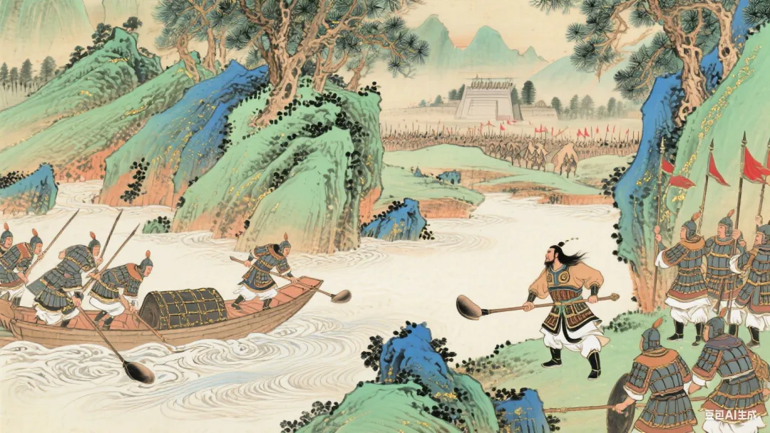这时候,项王想要向东渡过乌江。乌江亭长正停船靠岸等在那里,对项王说:“江东虽然小,但土地纵横各有一千里,民众有几十万,也足够称王啦。希望大王快快渡江。现在只有我这儿有船,汉军到了,没法渡过去。”