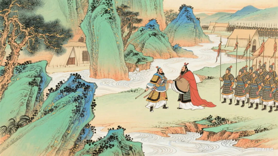 这时,汉军士卒气盛,粮草充足,项王士卒疲惫,粮食告绝。汉王派陆贾去劝说项王,要求放回太公,项王不答应。汉王又派侯公去劝说项王,项王才跟汉王定约,平分天下,鸿沟以西的地方划归汉,鸿沟以东的地方划归楚。项王同意了这个条件之后,立即放回了汉王的家属。汉军官兵都呼喊万岁。汉王于是封侯公为平国君。侯公却躲起来不肯再见汉王。汉王说:“这个人是天下的善辩之士,他待在哪国,就会使哪国倾覆,所以给他个称号叫平国君。”项王订约后,就带上队伍罢兵东归了。