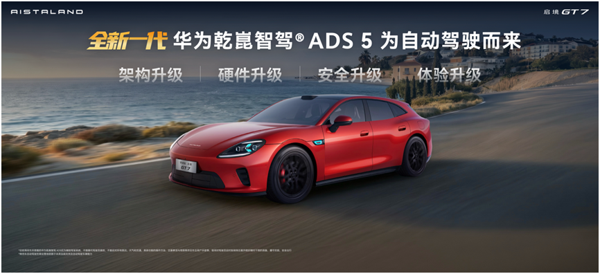 在当天举行的启境GT7技术发布会上,官宣启境GT7将首批满配搭载华为乾崑新一代智能技术,包括华为乾崑智驾ADS 5、鸿蒙座舱小艺智能体、华为乾崑赤兔平台等全新一代智能技术,演绎“一车即乾崑”的技术实力。目前,启境GT7已获广州市L3级自动驾驶道路测试许可。