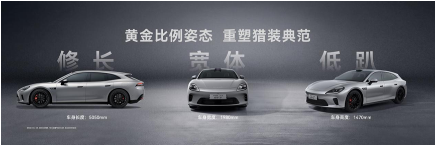 启境GT7将独创的“优雅张力美学”融入整车设计,打造出帅气动感、气场全开的猎装风范,并实现车长5050mm、车宽1980mm、车高1470mm,轮高比51.2%,修长、宽体、低趴的黄金比例姿态。为了让宽体效果更极致,后轮配275mm宽胎,肌肉感拉满。21.5度启境猎装角,最大化保证车尾空间,轴距达3000mm,轴长比59.4%,兼顾美感、实用与舒适。