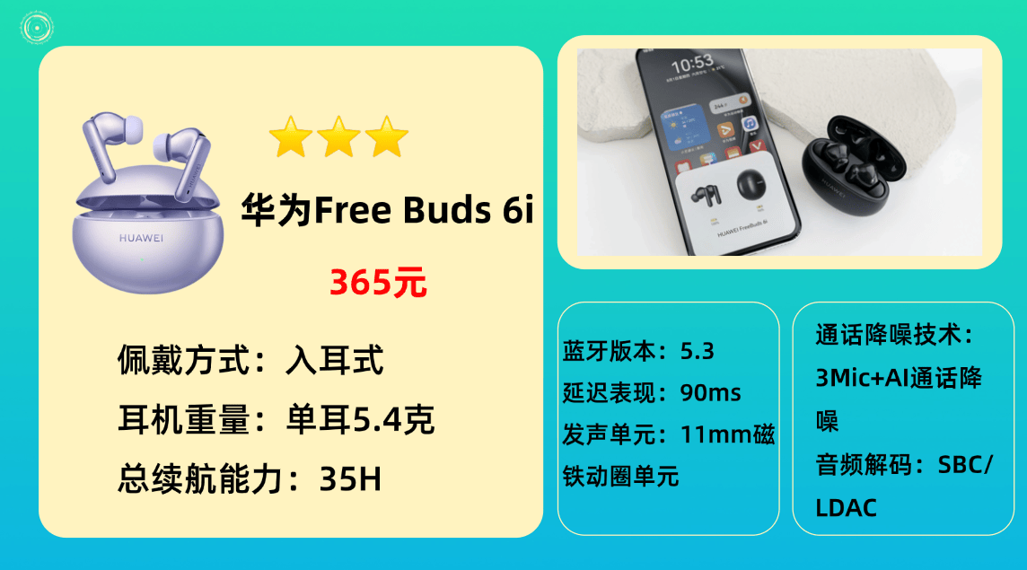 2、华 为F reeBuds 6i蓝牙耳机
