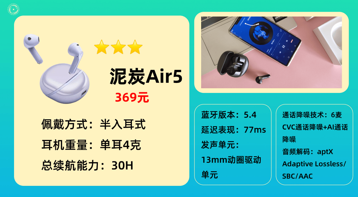 9、泥 炭A ir5蓝牙耳机
