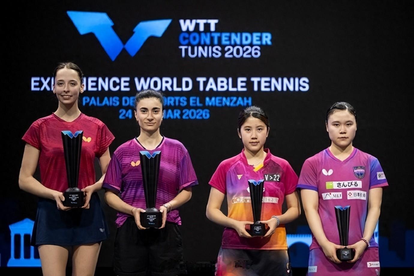 北京时间3月30日消息,2026年WTT常规挑战赛突尼斯站落下帷幕。女子双打决赛中,阿布拉米安/潘菲洛娃组合以3-2绝杀日本组合竹谷美涼/兼吉优花夺得冠军。而在男子双打决赛中,布尔拉萨德/多尔组合以3-1战胜印度组合玛纳什-沙/德塞夺得冠军。