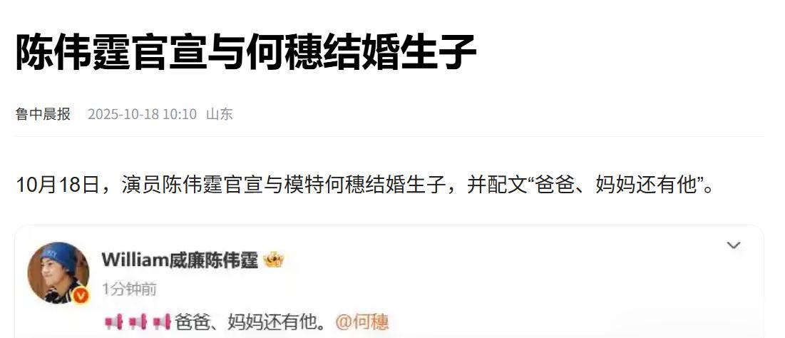 没想到两人静悄悄干大事,竟然直接官宣有了一个孩子,所有流言蜚语不攻自破,陈伟霆用幸福的家庭,将蔡卓妍和杨颖比下去了。
