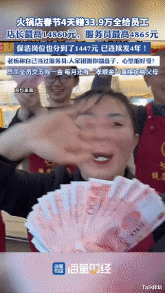 这个火锅店不错哦,过年把利润分给员工,简直太棒了