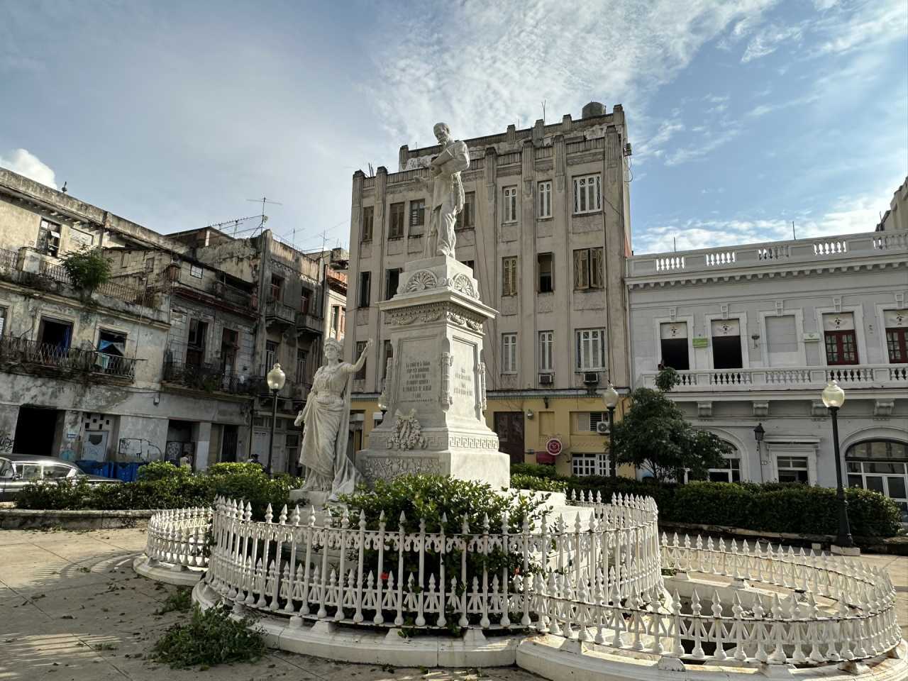 这是古巴民族英雄何塞·马蒂(José Martí)的大理石雕像,位于中央公园内。他是古巴独立运动的先驱、诗人和思想家,被古巴人民尊为“国父”。