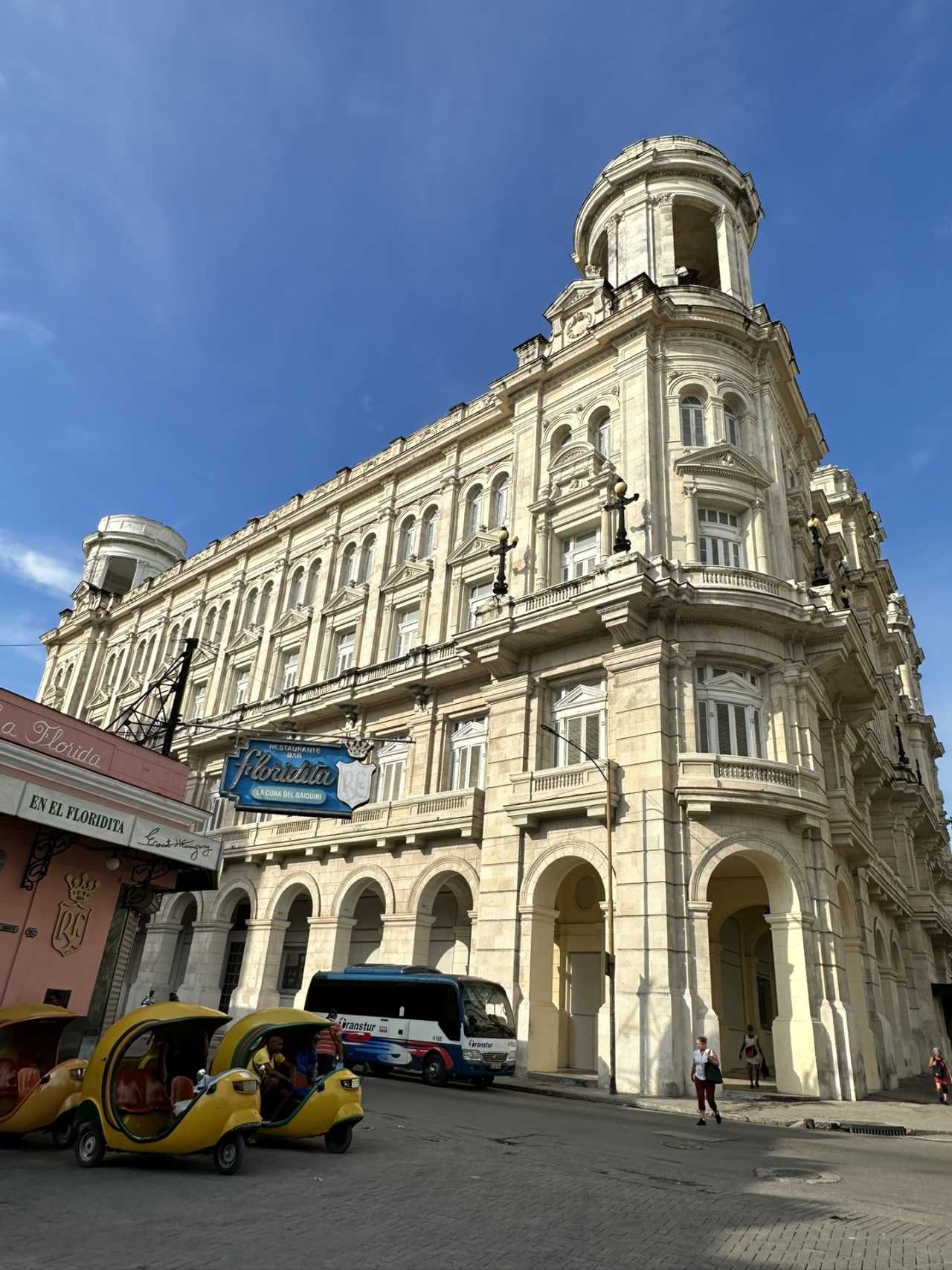 左侧粉色建筑是著名的小佛罗里达(La Floridita)酒吧,海明威曾是这里的常客,以达伊基里鸡尾酒闻名。