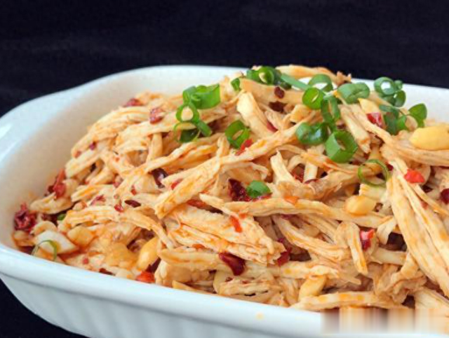 2. 撕鸡丝: 鸡胸肉煮熟后取出,稍微放凉,用两只叉子或手将鸡胸肉撕成细丝。要撕得均匀,尽量细一些,这样口感更佳。