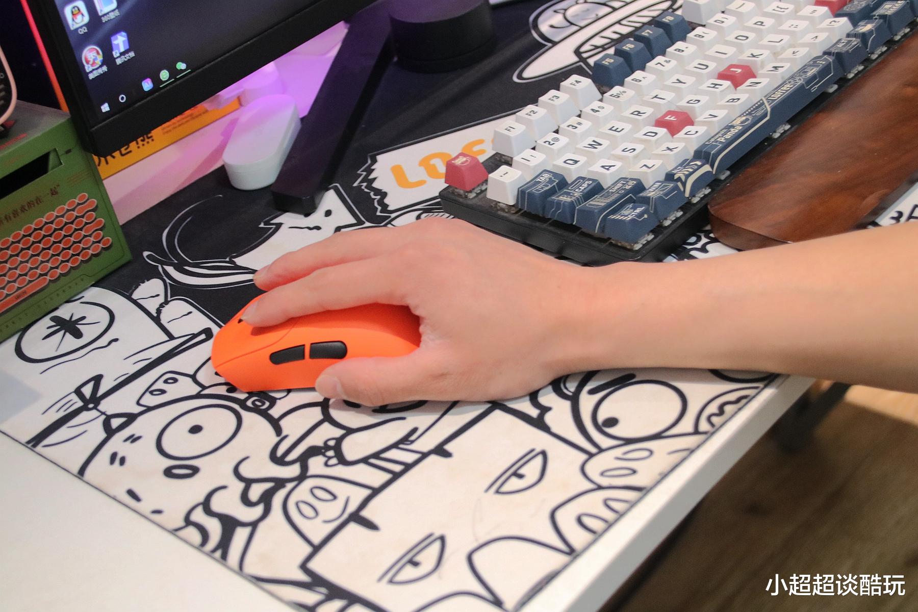 它采用人体工学对称设计,适配大手全握姿,不管你是抓握、趴握还是指握,都能牢牢贴合手掌,掌心支撑饱满,不会有空落落的感觉,而且机身收腰设计合理,拇指和无名指能自然贴合,快速甩动鼠标时也能稳稳掌控。