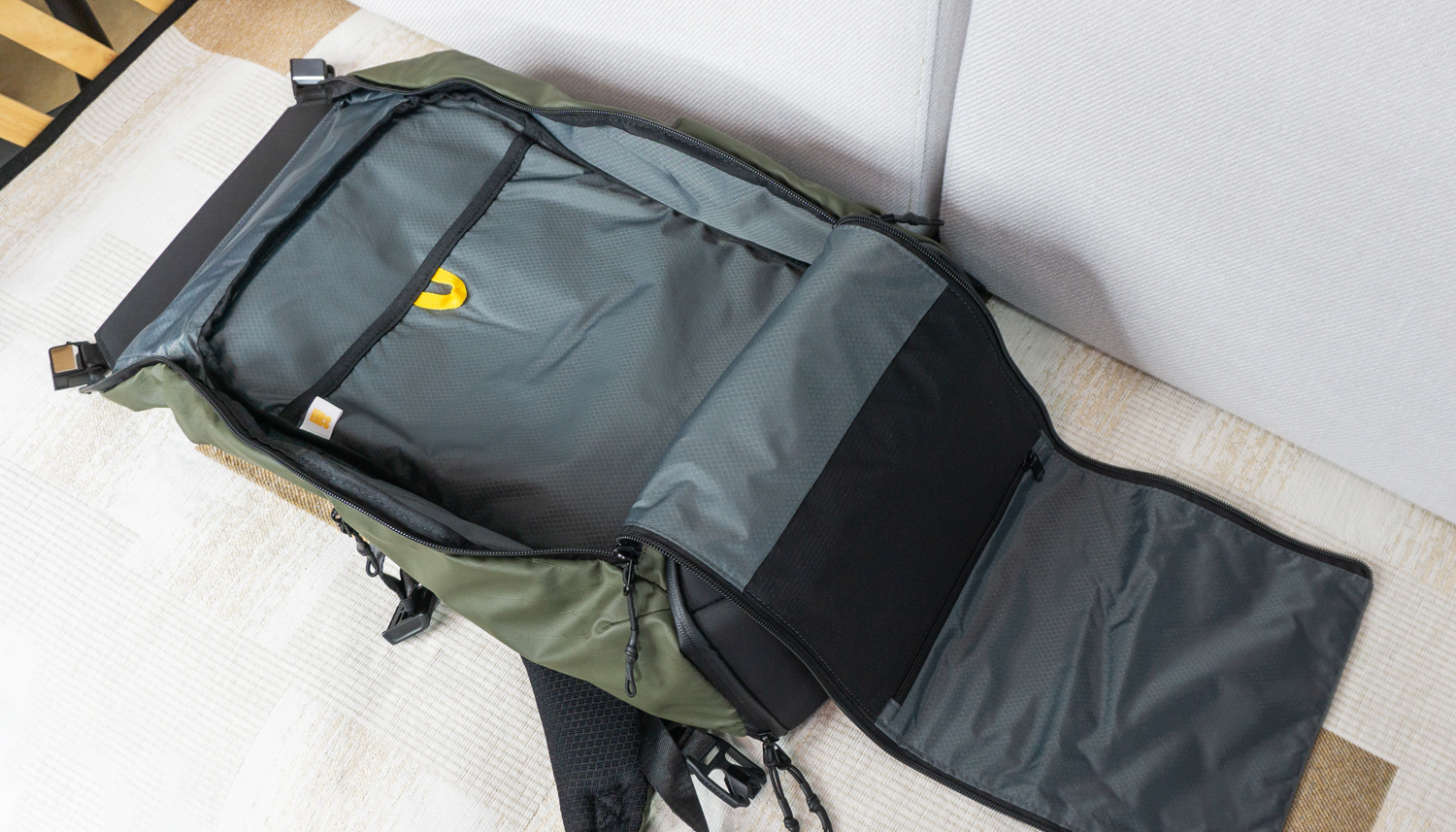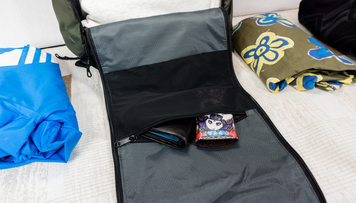 在收拾衣物时,这个设计的优点就更明显。整个主仓完全敞开,没有一点视线阻碍,整理起来就像在装行李箱。T恤、裤子可以平整地铺进去,又或者用收纳袋分装后整齐码入。这样不仅装得更多,空间也利用得更充分,而且能从根本上避免衣服挤得皱巴巴的。