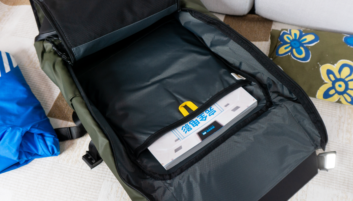 此外,地平线8号轻旅行双肩包内的隔层设计科学合理。笔记本、平板这类设备都能轻松归类,日常通勤或者外出时用起来特别顺手。而内侧的隐藏收纳袋,让重要的钱包、证件收纳也有了去处,不用担心包里乱作一团。