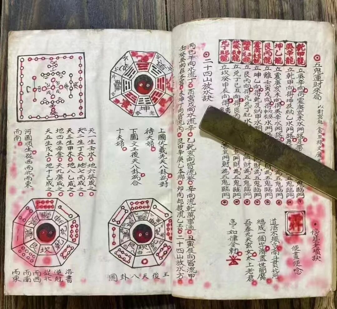 作为九星风水的正统传承,它融合峦头与理气精髓,摒弃市面印刷本的讹传与删减,以古版彩色线装原汁原味保留九星堪舆的核心心法 —— 从消砂辨吉凶、依水立向定局,到二十四龙寻吉穴、五鬼运财催旺局,再到二十四山放水、傍葬老坟、龙运山运向运推演,每一页都是可直接上手的实操指南,绝非纸上谈兵。