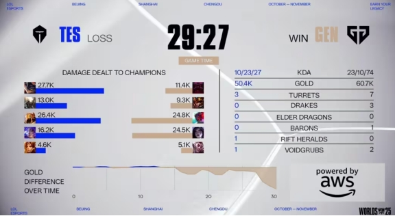 2025年10月23日,瑞士轮第七日的比赛赛果揭晓,电竞场上可谓是风云变幻。TES与GEN的对决备受瞩目,然而结果却令人惋惜,TES以0 - 2不敌GEN,落入了生死局,而GEN则顺利晋级八强。