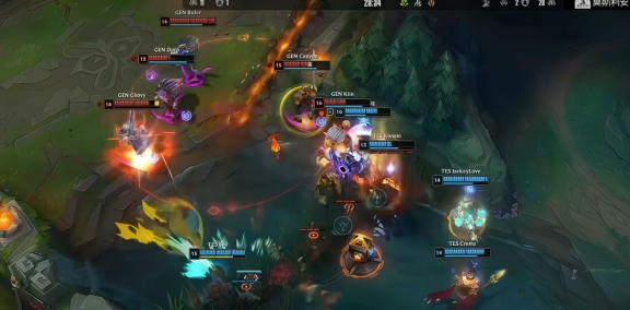 在第一局比赛中,TES开场便展现出了强大的攻势,三人下路越塔击杀GEN布隆,成功拿下一血,这让观众们看到了他们的决心和实力。但随后,Kiin在上路团战中建立了优势,15分钟时,GEN控下先锋撞掉了TES中路一塔。紧接着,一波团战打出0换4的精彩战绩,推掉了TES中路二塔。最终在24分钟时,下路团灭TES并平推获胜。第二局,小奶油对线打残Chovy,展现出了出色的个人能力。然而,Canyon率先击杀小奶油拿下一血,随后节奏被GEN掌控。15分钟GEN拿小龙并团灭TES,尽管TES控下先锋推掉上路两座塔,但自家中路两座塔还是被推。20分钟后,GEN控下厄塔汗、听牌龙,最终团战再次团灭TES,赢下了比赛。