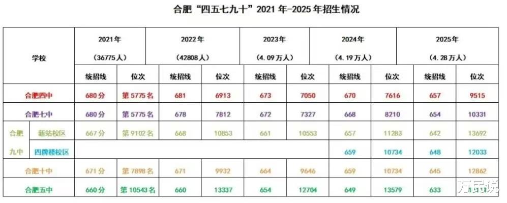 合肥四中,从5775名跌至9515名,2025年生源水平相当于三年前的九中新站校区;