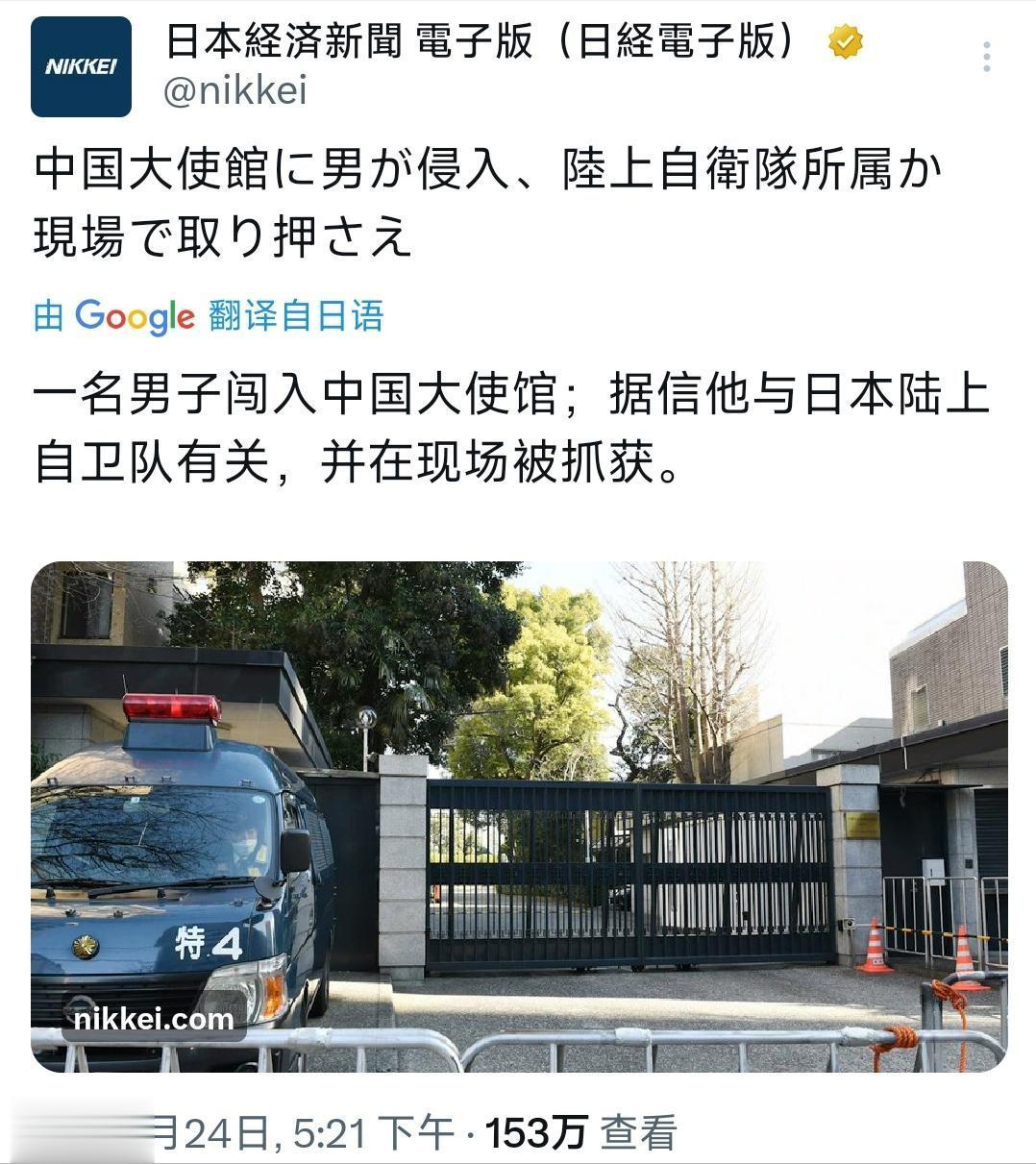 近日,日本男子携刀强闯中国驻日本大使馆。毫无疑问,这是一种极端的过激行为,但在某种意义上,这却是中国的胜利。